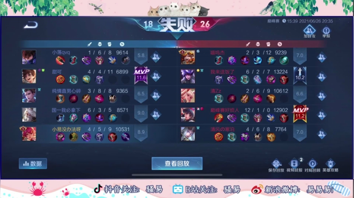 【2021-06-26 18点场】骚易丶:月底巅峰赛冲冲冲..