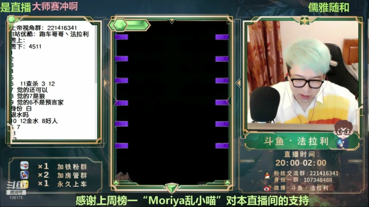 砥砺前行 励志做最好的狼人杀技术主播 2020-09-15 00点场