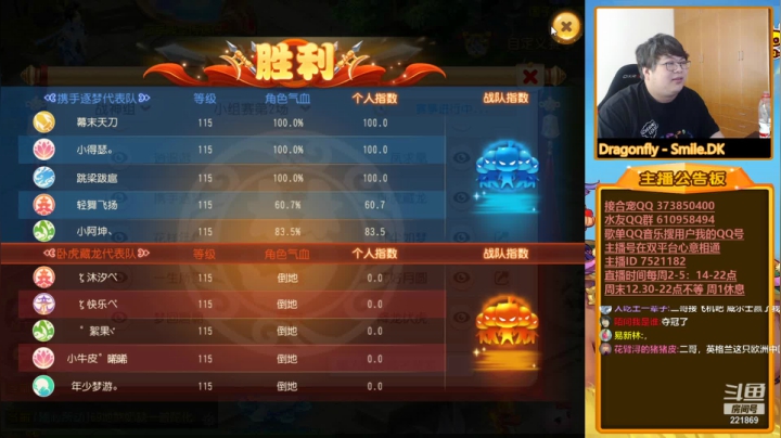 【2021-06-26 20点场】小儿郎丶丶:全民PK赛梦幻西游手游,221869~