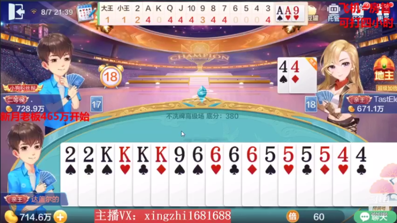 【2021-08-07 21点场】灬幸之斗地主灬:1420万一局的跑得快!谁人能破?