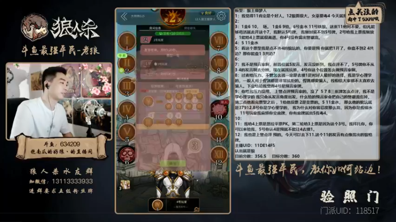 【2021-08-11 00点场】EA丶老狼:#官方狼人杀#开钻石粉丝牌送房管!