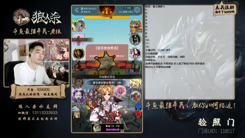 【2021-08-11 00点场】EA丶老狼:#官方狼人杀#开钻石粉丝牌送房管!