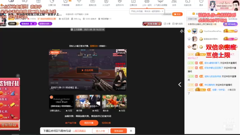 【2021-08-31 22点场】呆妹儿小霸王:呆妹:有双倍亲密度三倍上限~我回来啦