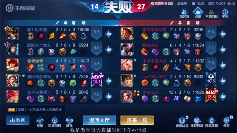 【2021-09-04 20点场】不可一世杀手:认认真真打好每一盘