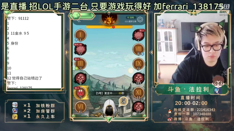 【2021-09-09 17点场】法拉利的直播间:斗鱼NO.1狼人杀心理学狼人杀