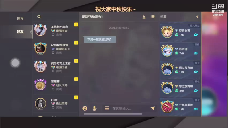 2021年09月22日发布于斗鱼