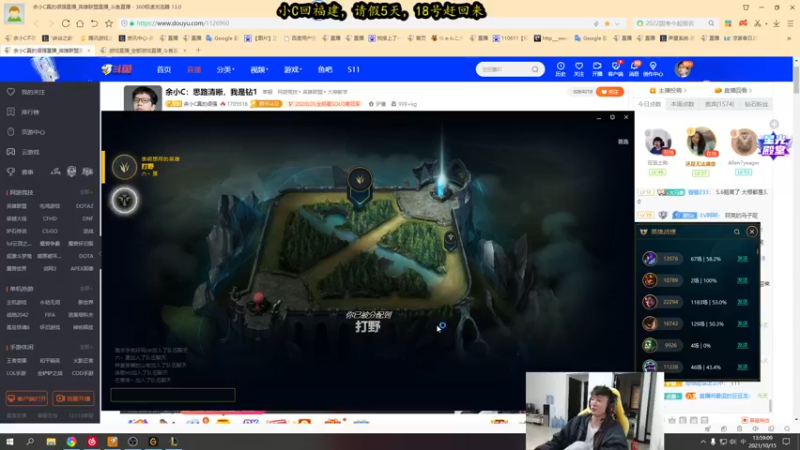 【2021-10-15 13点场】余小C真的很强:余小C:思路清晰,我是钻1