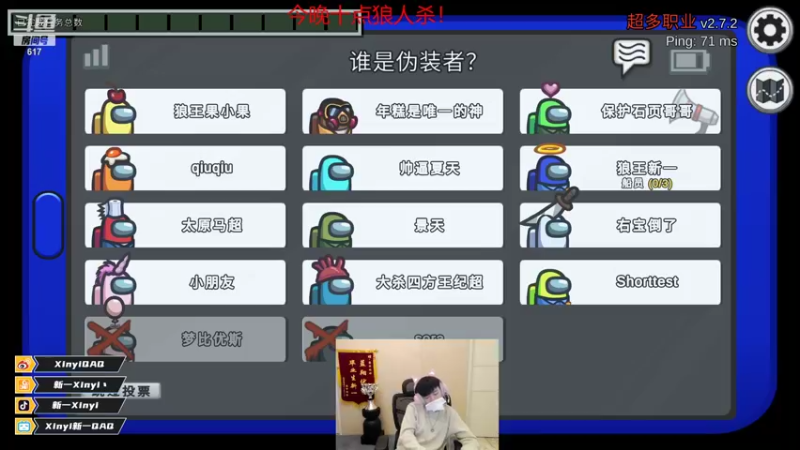 【2021-11-23 21点场】Xinyi新一丶:狼人杀狼王新一上线!!