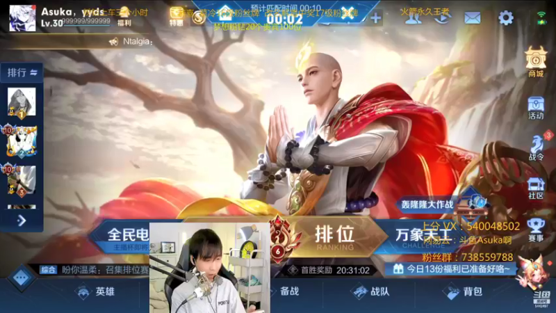 【2025-01-09 23点场】路人王Asuka:新年快乐,祝老板们爆富国服韩信李白上分中