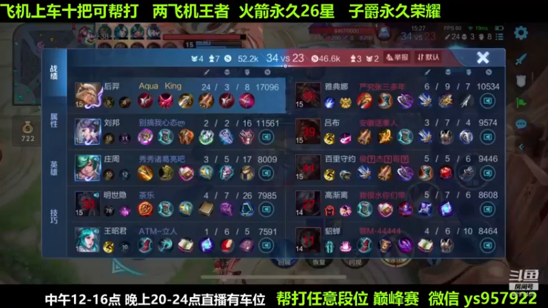 【2024-10-04 22点场】阳神丶国服后羿梦奇:国服后羿艾琳带粉7分钟一把