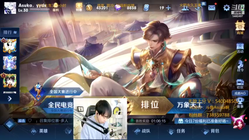 【2025-01-10 21点场】路人王Asuka:新年快乐,祝老板们爆富国服韩信李白上分中