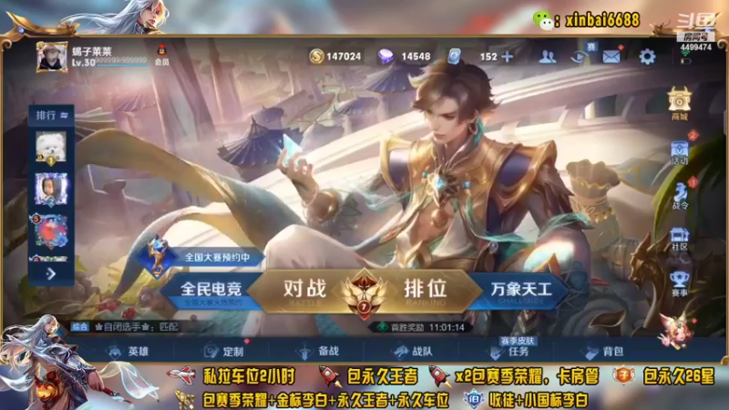 【2022-03-16 23点场】电竞信白丶:国服李白带粉包赢 有车位