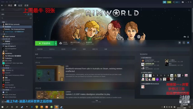 【2022-03-14 22点场】主播谎言言:环世界-蘑菇布还得种