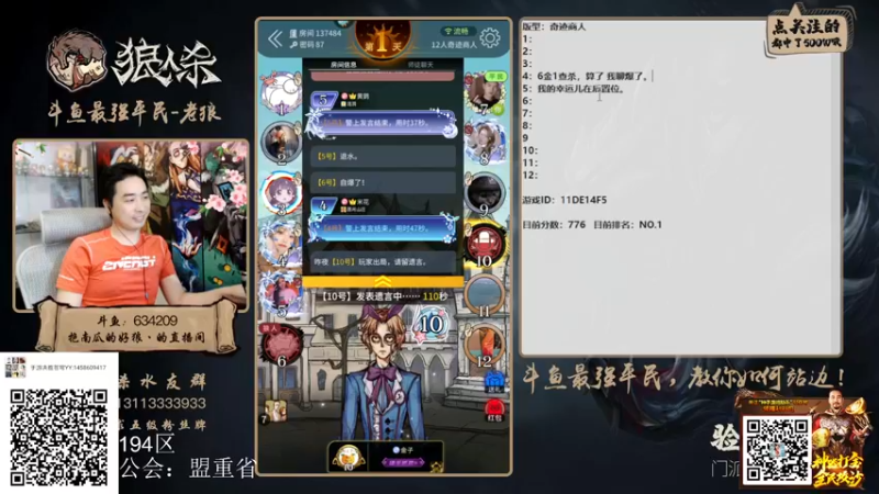 【2022-03-17 23点场】EA丶老狼:#狼人杀官方#大师榜第一,休赛一周!