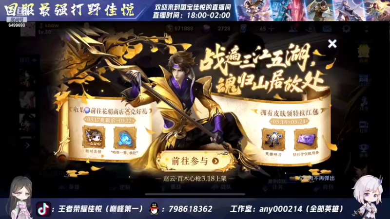 【2022-03-23 18点场】国宝佳悦:国服打野巅峰赛冲冲冲
