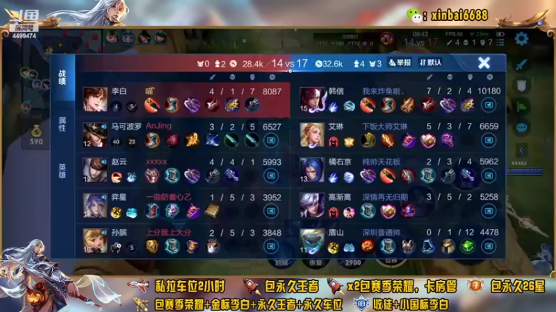 【2023-07-30 21点场】信白丶李白导师:国服李白巅峰教学屠杀