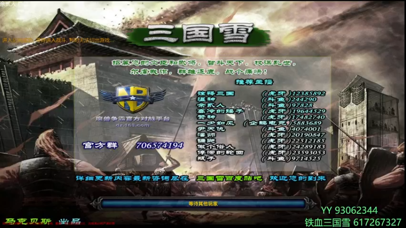 【2022-04-15 20点场】余贰人:3:三国雪~