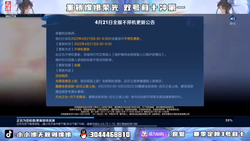【2022-04-21 18点场】小小娥1:巅峰赛冲全国第一!