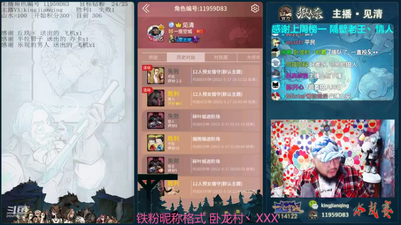 【2022-05-17 22点场】见清king:激情狼人杀,梦幻大师场!