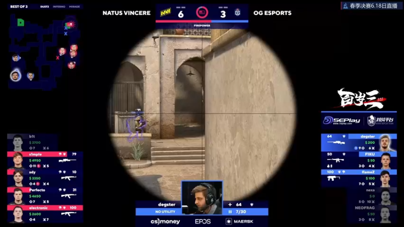 【2022-06-18 21点场】CSGO百岁三:【百岁三】Navi vs OG