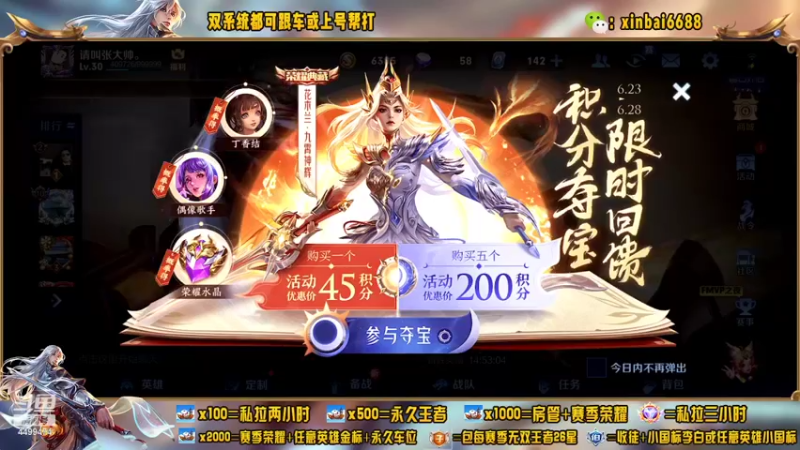 【2022-06-23 20点场】电竞信白丶:国服李白带粉 有车位