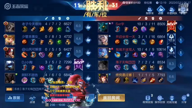 【2022-07-12 00点场】A老回:核弹流诸葛打野嘎嘎乱杀有车位