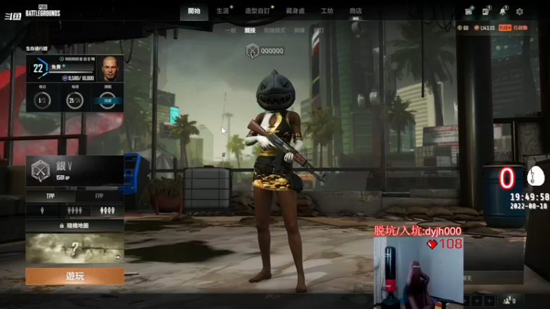 【2022-08-18 11点场】气人主播QQQ:【G宝】吃鸡新游,超击突破~~