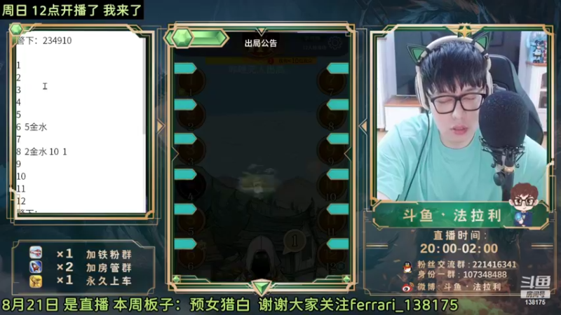【2022-08-21 20点场】法拉利的直播间:斗鱼NO.1 怒C 把把点4狼