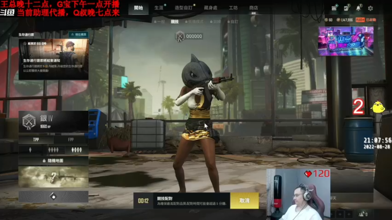【2022-09-04 11点场】气人主播QQQ:【G宝】吃鸡,嗨起来~Q叔七点来