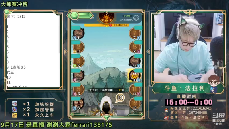 【2022-09-17 16点场】法拉利的直播间:斗鱼NO.1最强心理学狼人杀主播