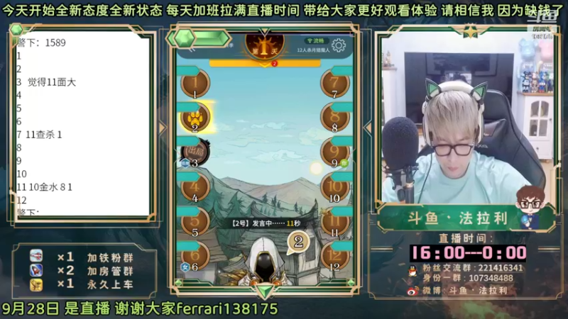 【2022-09-28 18点场】法拉利的直播间:斗鱼NO.1最强心理学狼人杀主播