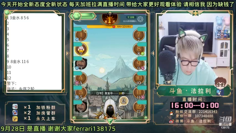 【2022-09-28 18点场】法拉利的直播间:斗鱼NO.1最强心理学狼人杀主播
