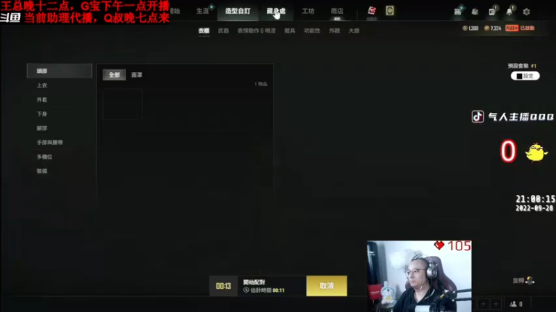 【2022-09-29 13点场】气人主播QQQ:【G宝】吃鸡,嗨起来~Q叔七点来