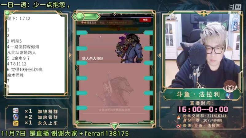 【2022-11-07 16点场】法拉利的直播间:大师赛重启开始怒冲榜一