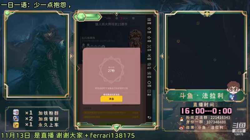 【2022-11-13 16点场】法拉利的直播间:大师赛重启开始怒冲榜一