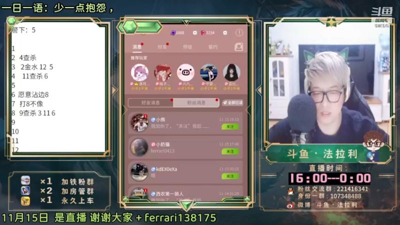 【2022-11-16 00点场】法拉利的直播间:大师赛重启开始怒冲榜一