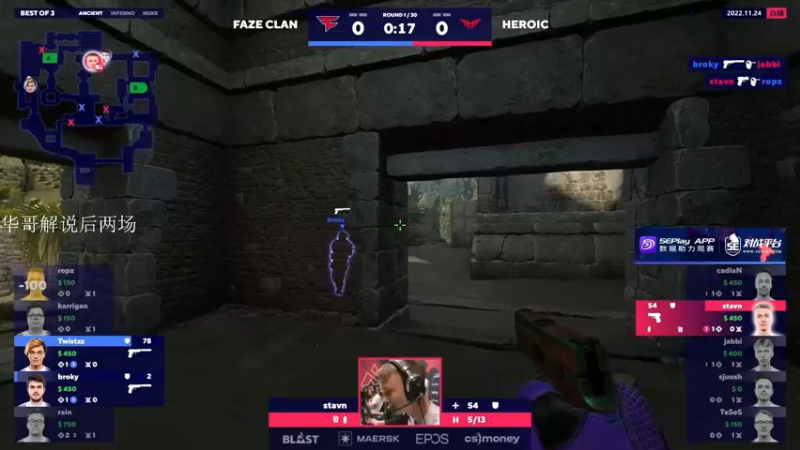 【2022-11-24 18点场】CSGO百岁三:双倍 直播 Heroic vs Faze