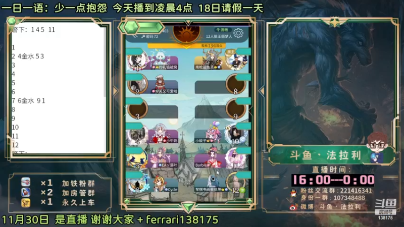 【2022-11-30 04点场】法拉利的直播间:大师赛重启开始怒冲榜一