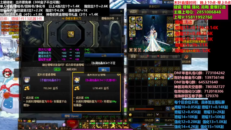 【2026-02-02 10点场】DNF木叶剑心:助理:2026年年套增幅强化木叶晚上播