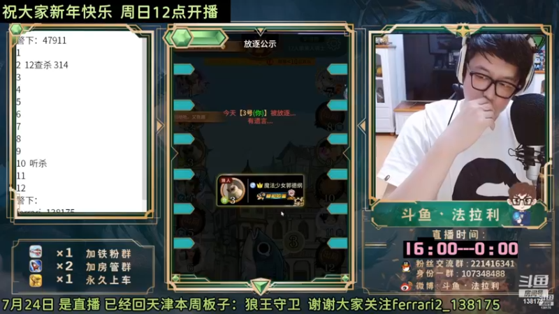 【2023-01-07 12点场】法拉利的直播间:斗鱼NO.1最强狼人杀心理学技术主播