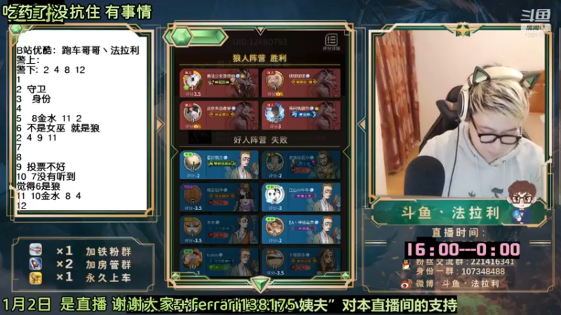 【2023-01-03 06点场】法拉利的直播间:斗鱼NO.1最强狼人杀心理学技术主播