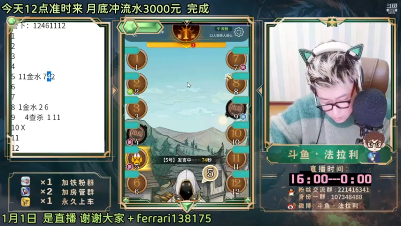 【2023-01-01 00点场】法拉利的直播间:斗鱼NO.1最强狼人杀心理学技术主播
