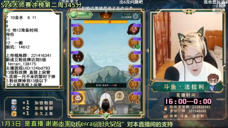 【2023-01-07 12点场】法拉利的直播间:斗鱼NO.1最强狼人杀心理学技术主播