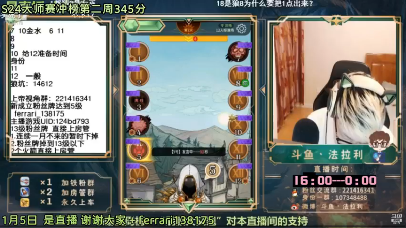 【2023-01-06 12点场】法拉利的直播间:斗鱼NO.1最强狼人杀心理学技术主播