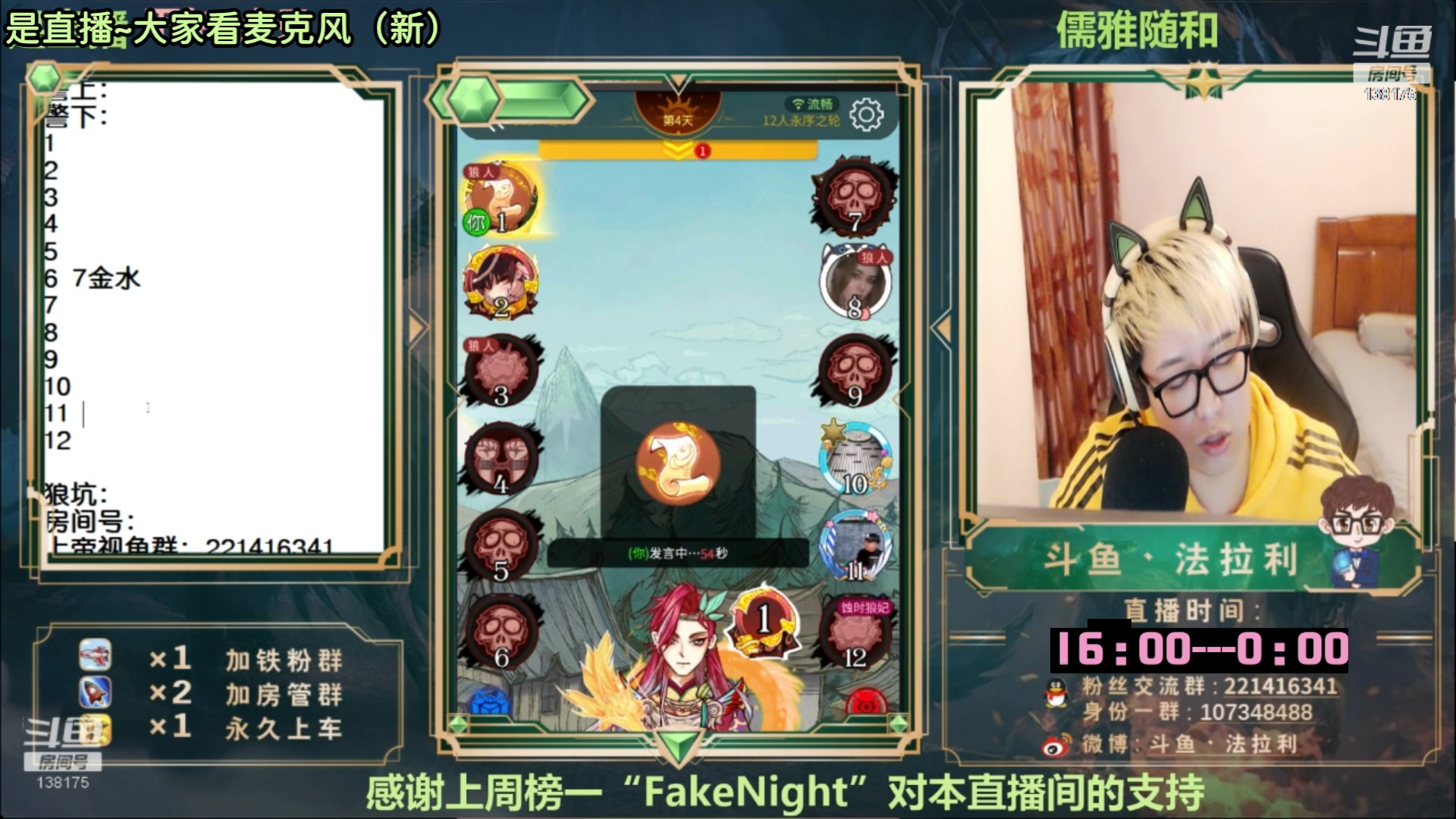 【2023-01-20 12点场】法拉利的直播间:斗鱼NO.1最强狼人杀主播