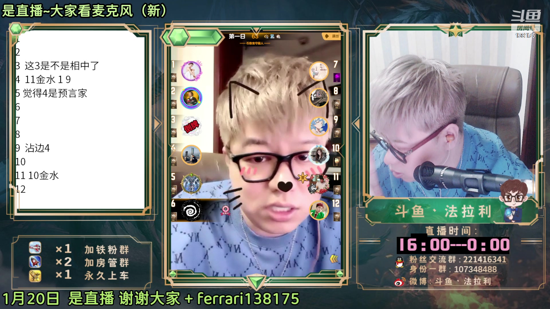 【2023-01-20 20点场】法拉利的直播间:斗鱼NO.1最强狼人杀主播