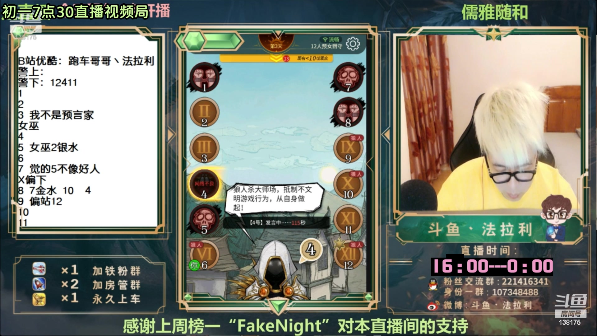 【2023-01-17 18点场】法拉利的直播间:斗鱼NO.1最强狼人杀主播