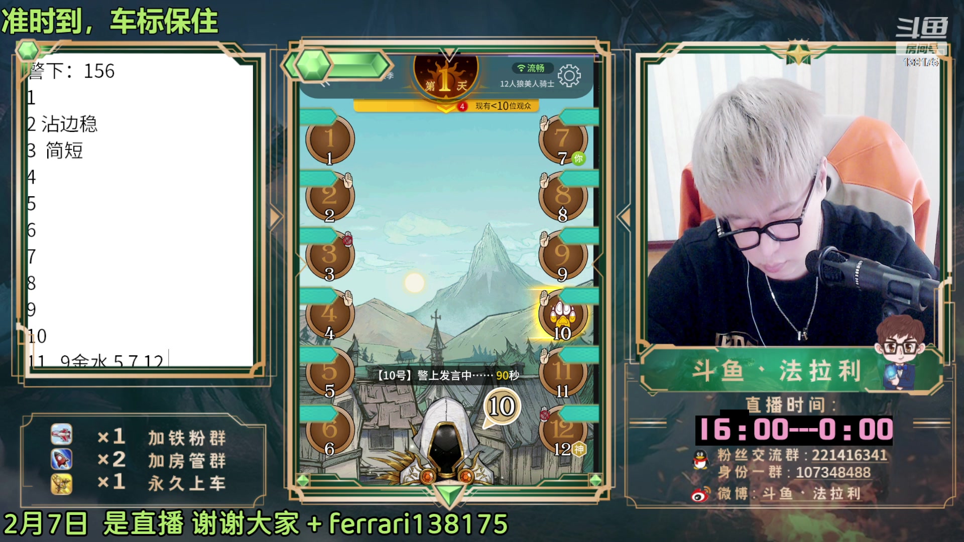【2023-02-07 17点场】法拉利的直播间:斗鱼NO.1第一狼人杀主播