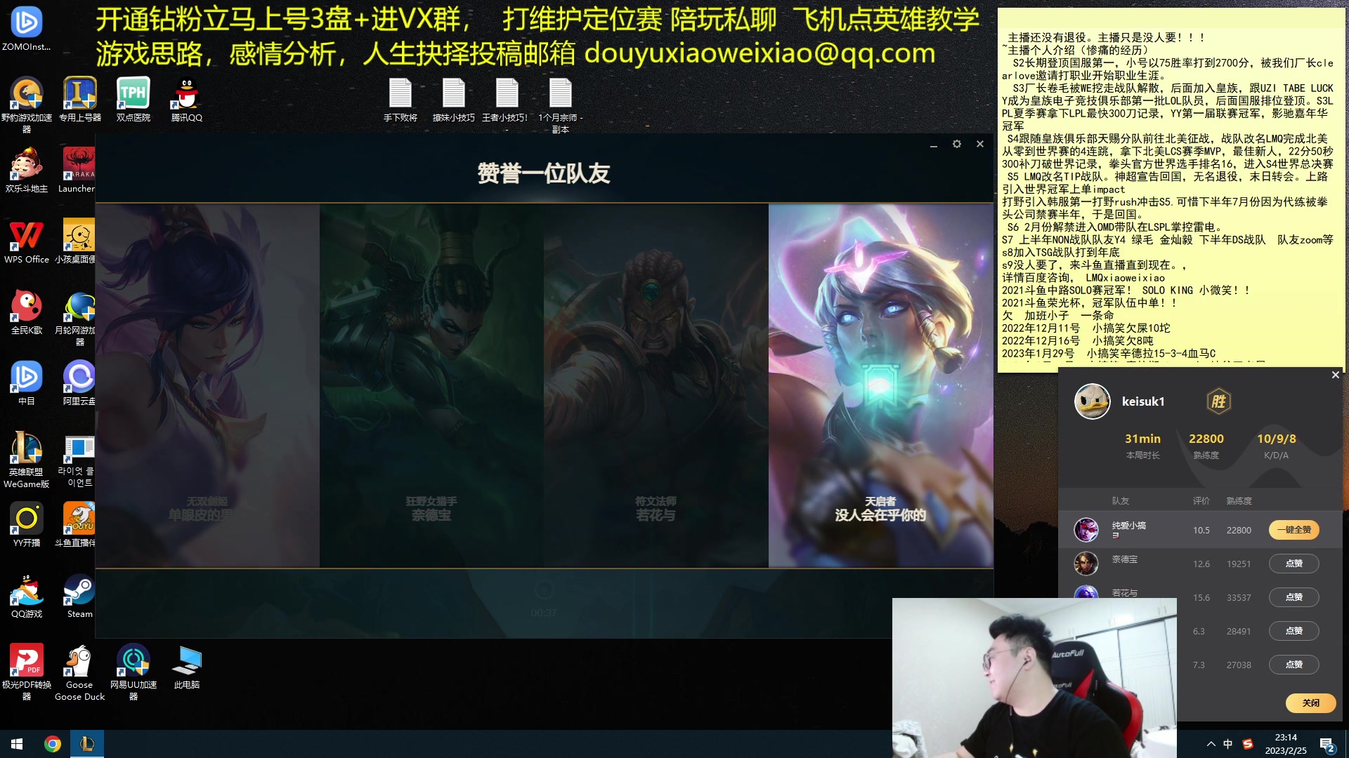 【2023-02-25 22点场】LMQ丶小搞笑:1区宗师大师局,练练ADC