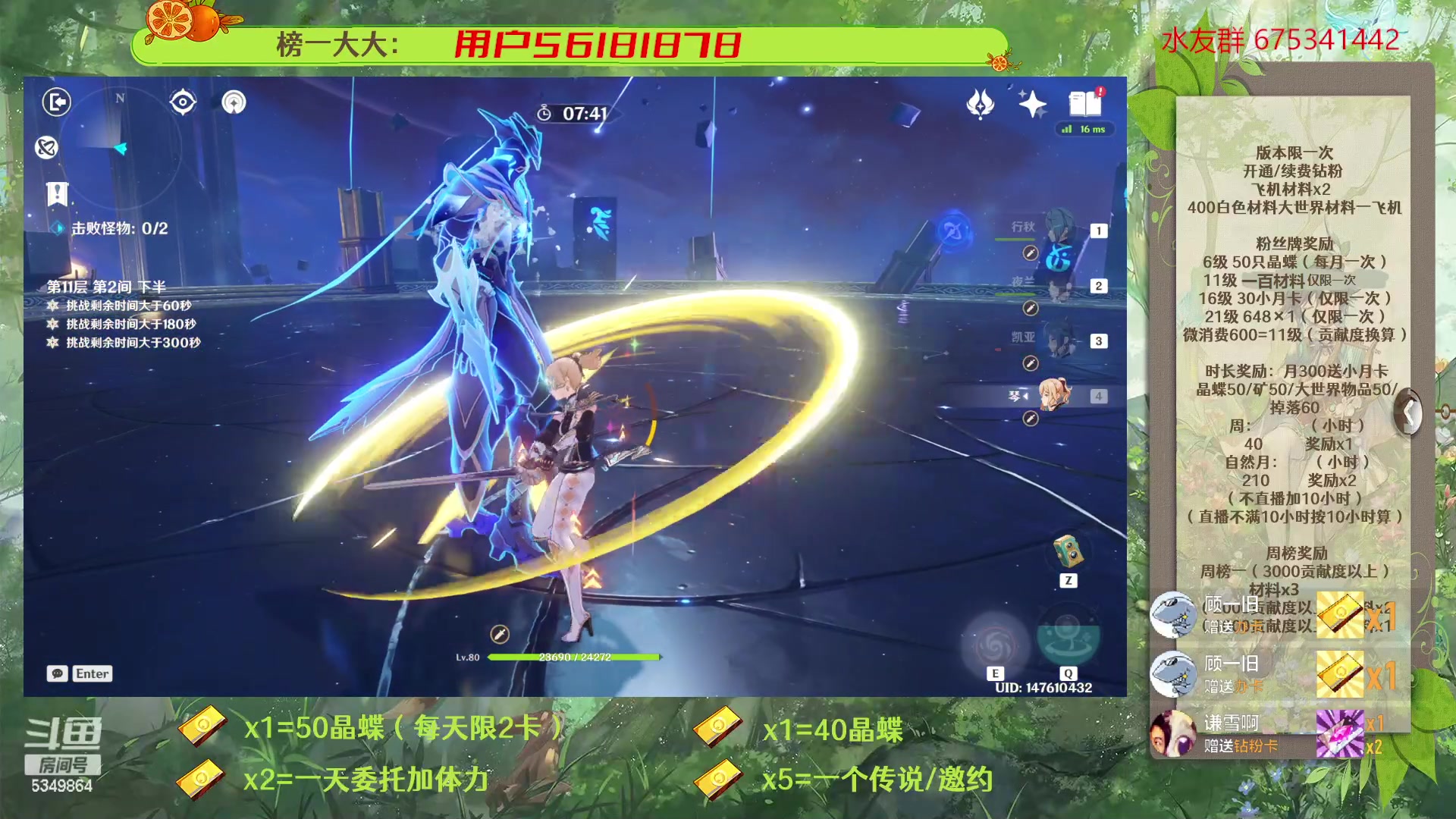 【2023-03-03 09点场】请叫我总攻大人丶:原神深渊/探图/钓鱼/日常/晶蝶